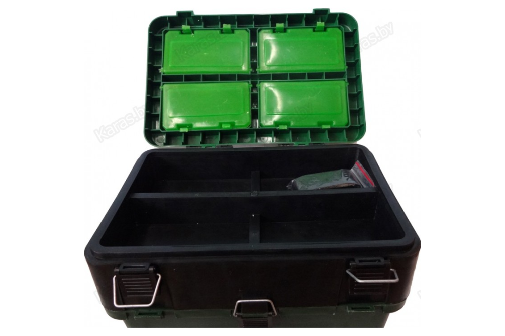 Удобный и функциональный ящик зимний обеспечивает транспортировку улова и большого количества снастей, легко выдерживает средний вес взрослого человека в качестве сидения. Ящик рыболовный обладает хорошо продуманным и организованным внутренним пространством. Основной объем ящика предназначен для хранения и транспортировки выловленных хвостов. Крышка с двумя ярусами позволяет хранить приманки и различные рыболовные аксессуары. Для удобства переноски имеется съемный плечевой ремень. Накладка на крышку из пенки.