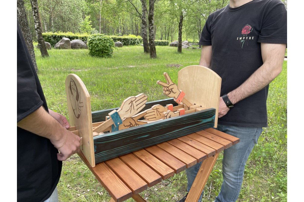 Аренда деревянной игры "Камень, ножницы, бумага"