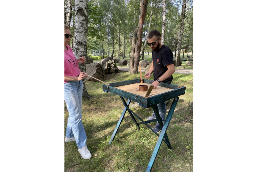 Увлекательная деревянная игра на 2-4 человека "Колодец". Меткость и точность, вот, что побеждает в данной игре. Аренда игры - это безпроигрышный вариант развлечения гостей на мероприятии. Стильный внешний вид, только натуральные материалы.