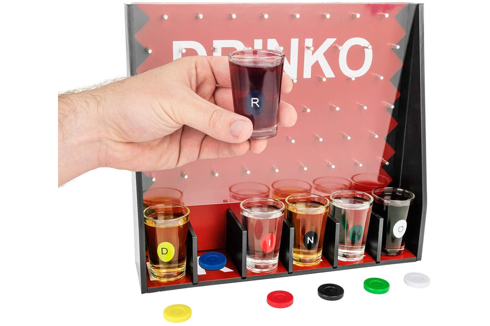 Застольная игра в аренду Drinko создана чтобы разнообразить вашу вечеринку! Drinko Shot Game внесет изюминку в Ваш праздник. Прикольная игра, сделает компанию шумной и веселой. Простые правила игры: в комплекте – 6 рюмок, фишки и игровое поле. Рюмки ставятся внизу поля, каждый игрок бросает фишки, которые падают в рюмки. Игрок, в чью стопку попала фишка, обязан её выпить.