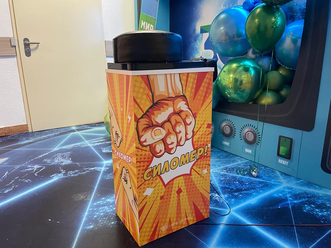 "Силомер" привлечет внимание участников вашего мероприятия своим необычным дизайном, звуковыми комментариями и захватывающим процессом. Участники смогут помериться силой, соревноваться между собой и проверить свои спортивные навыки. Этот аттракцион подойдет как для детей, так и для взрослых, и станет отличным дополнением любого мероприятия.