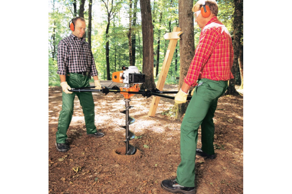 Мотобур (ямобур, бензобур) Stihl BT 360 Мощный профессиональный мотобур, обслуживаемый двумя операторами. Диаметр шнека 200-350 мм. Глубина бурения до 2,0 м. Мощность 3,0 кВт, 4,1 л.с. Вес 28,5 кг. Частота вращения шпинделя, мин-1:50. Мотобур снабжен рамой со складными ручками для облегчения загрузки в багажник легкового автомобиля. Универсален в применении, подходит для различных работ: бурения отверстий под столбы, сваи глубиной до 2 метров и диаметром до 350 мм в зависимости от применяемых шнеков и использования специального удлинителя шнека. Также бензобур прекрасно подходит для бурения лунок под посадку деревьев, взятие образцов грунта.