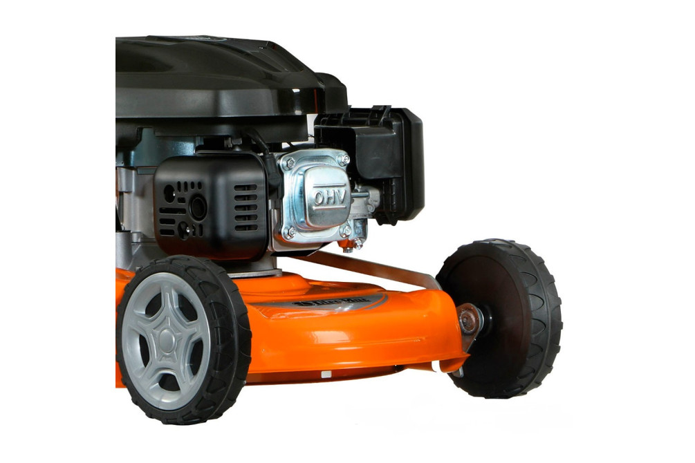 Газонокосилка оборудована механической тягой с одной передачей, благодаря которой можно качественно обрабатывать большие площади со скоростью работы 3,6 км/ч на участках со склонами.
