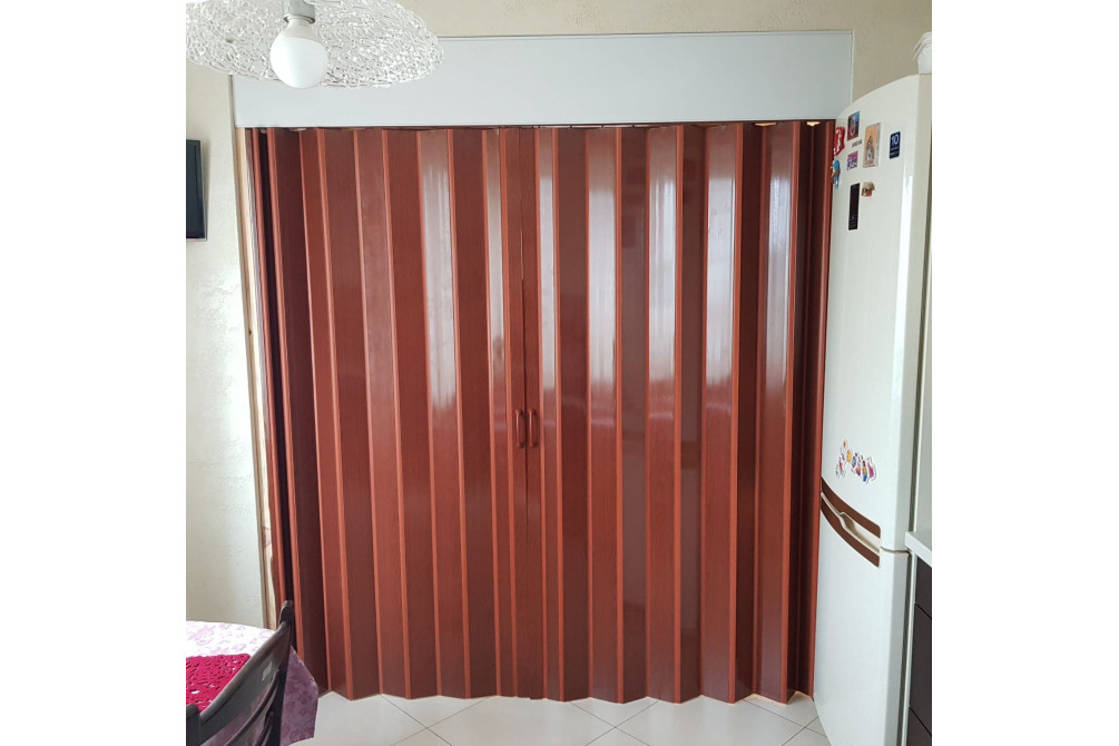 Дверь межкомнатная гармошка — необходимая вещь для закрытия дверного проема в кухне и коридоре. Для приемки квартиры газовой службой. Раздвижные двери очень прочные и простые в монтаже.