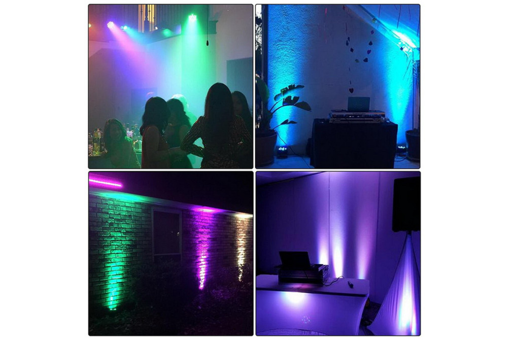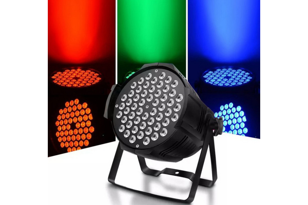 Он имеет 54 светодиода RGB (1 Ватт каждый). Активируется автоматически, от звука, через DMX или по Master-slave. Универсальный блок питания позволяет работать в любых сетях с напряжением от 100 до 240 Вольт. Рассчитан на 50000 часов работы.