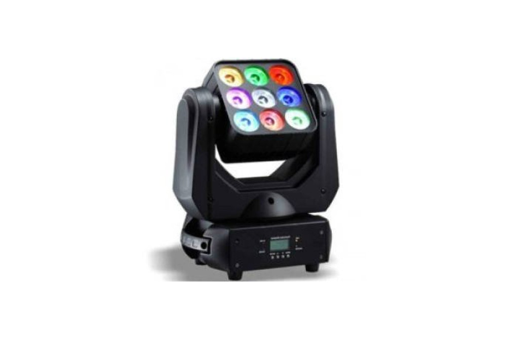 LM90 - светодиодный прибор типа matrix в компактном исполнении от китайского производителя Big Dipper. Данный прибор сочетает в себе девять лучей (3 x 3), расположенных на одной матрице, которая, в свою очередь, может вращаться в двух плоскостях (tilt и pan). Цвет и интенсивность каждого луча может контролироваться отдельно по протоколу DMX512, что позволяет создавать уникальные визуальные эффекты.