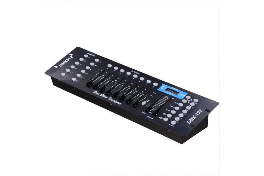 DMX-512 контроллер. 192 канала DMX. 30 банков по 8 сцен. Авто запуск. Режим звуковой активации. Синхронизация “BEAT”. MIDI совместимость. Контроль 12 световых приборов по 16 каналов.