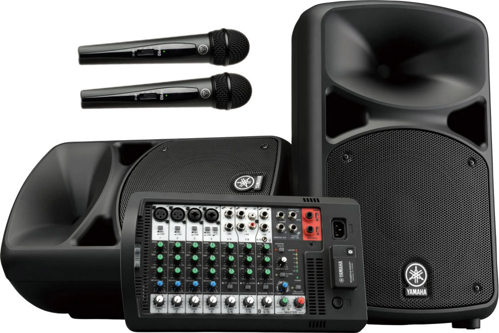 - акустическую систему на 680Вт Yamaha Stagepas 600BT со стойками для колонок и 10ти канальным микшерным пультом. Акустическая система поддерживает технологию Bluetooth, можно воспроизводить музыку с любых устройств, в том числе с мобильного телефона.