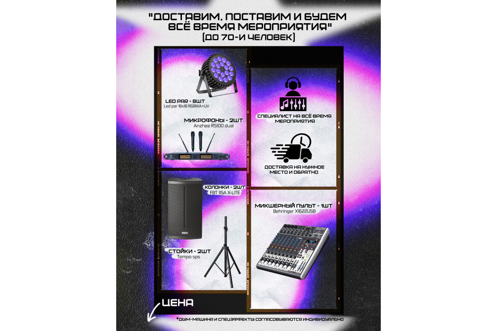 Сможем как обеспечить мероприятие звуком и светом ПОД КЛЮЧ (доставка, монтаж, демонтаж, специалист на ВСЁ время мероприятия)