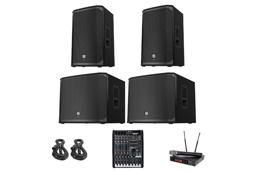 - Electro-Voice ELX118P - 2шт. (Активный сабвуфер мощностью RMS 700 Вт.)