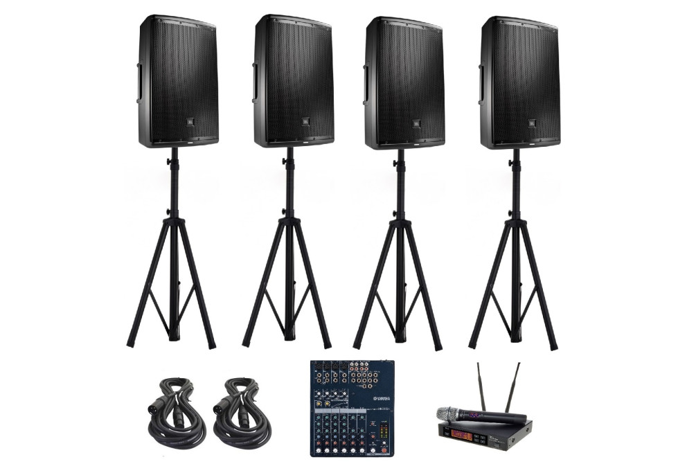 - JBL EON615 - 4шт. (Активные колонки - 1000W пиковая мощность каждой)