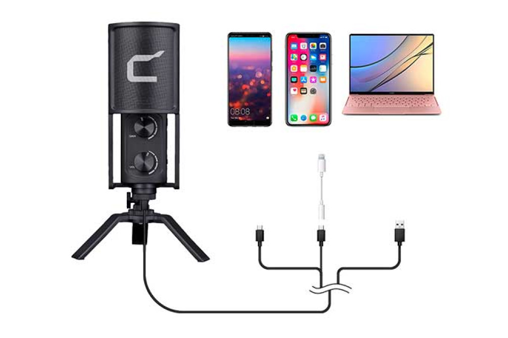 Comica STM-USB выполнен из высококачественных материалов. Металлический корпус микрофона гарантирует надежность и долговечность. Представленное устройство имеет достаточно удобный функционал, отличается простотой управления. Можно производить настройки с любых устройств на системе Android, IOS и Windows. Для мониторинга записываемого звука предусмотрен выход для наушников.