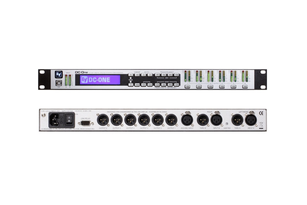 Процессор Electro Voice DC-ONE имеет 24-битный сигма-дельта АЦ/ЦА-преобразователь и 32-битный сигнальный процессор с плавающей точкой.