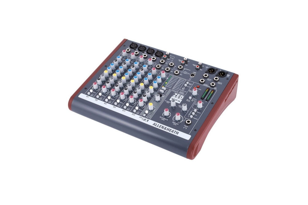 Микшер Allen&Heath ZED10FX имеет 3-х полосный эквалайзер с полупараметрической серединой на моно входах и 2-х полосный эквалайзер на стерео каналах, оснащен малошумящими высокочувствительными предусилителями, а также встроенный процессор эффектов с функцией TAP tempo и частотой сэмплирования 24 бит/48кГц.