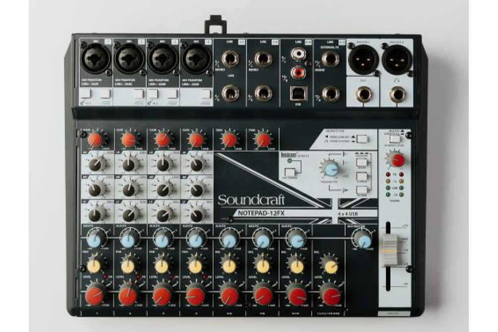 Notepad-12FX от Soundcraft - это небольшая 12-канальная аналоговая микшерная консоль со встроенным аудиоинтерфейсом 4x4 USB и встроенными эффектами Lexicon, хорошо подходящая для производства музыки, подкастов, видеопроизводства, интервью, репетиций, написания сессий, организации караоке и мобильные события. Микшер объединяет аналоговые компоненты профессионального уровня, такие как четыре микрофонных предусилителя с комбинированными входами XLR-1/4 ", 3-полосным эквалайзером и фильтрами верхних частот 100 Гц. Кроме того, входы 1 и 3 предлагают инструментальные входы Hi-Z для включения гитары и других высокоимпедансных инструментов.