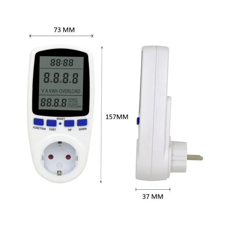 Цифровой ваттметр для розетки представляет собой универсальный прибор, который автоматически измеряет энергопотребление подключенных устройств и рассчитывает стоимость использованной электроэнергии.