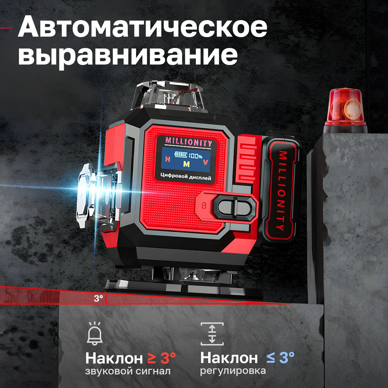 - Диапазон автоматического нивелирования: +3/-3 градуса