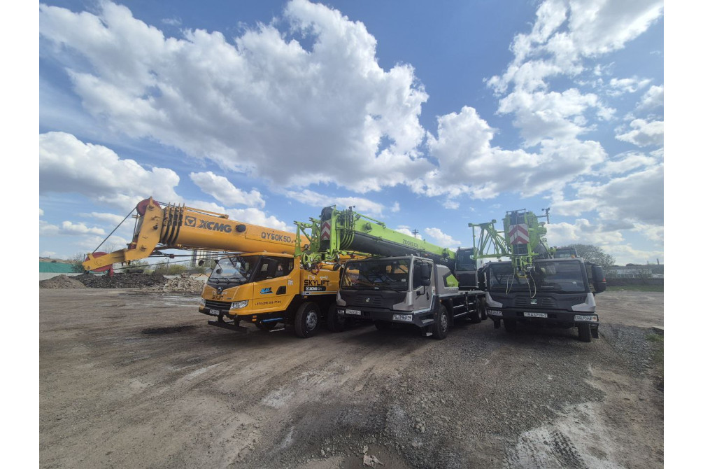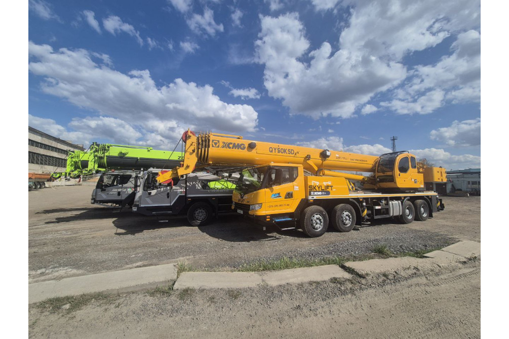 • XCMG — грузоподъемность 50 тонн, длина стрелы до 50 метров. Удобная кабина, надежная техника, оперативный выезд на объект. Идеален для работы в условиях плотной городской застройки и на промышленных площадках.