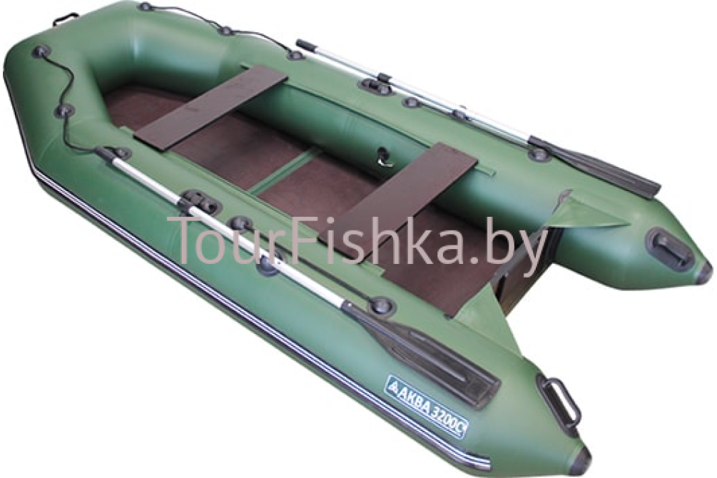 Надувная лодка Аква 3200 Слань-книжка Киль представляет собой моторно-гребную модель со стационарным транцем. Лодка вмещает 3 человека + снаряжение. При использовании с подвесным мотором его максимальная мощность не должна превышать 15 л.с. Баллоны Аква 3200 изготовлены из армированного пятислойного ПВХ фирмы Heytex (Германия) плотностью 850 г/м2. Материал устойчив к воздействию горюче-смазочных материалов (бензина, масла), ультрафиолетовых лучей и механических нагрузок. Диаметр баллонов лодки 40 см, 3 герметичных отсека. Швы клееные внахлест. Лодка имеет натяжное днище. В комплект Аква 3200 входят 2 сиденья из водостойкой фанеры с фиксированным креплением. Надувная лодка имеет жестко вклеенный транец из водостойкой многослойной фанеры. Торцы транца защищены пластиковой окантовкой. В месте крепления двигателя предусмотрены дополнительные накладки для уменьшения износа.