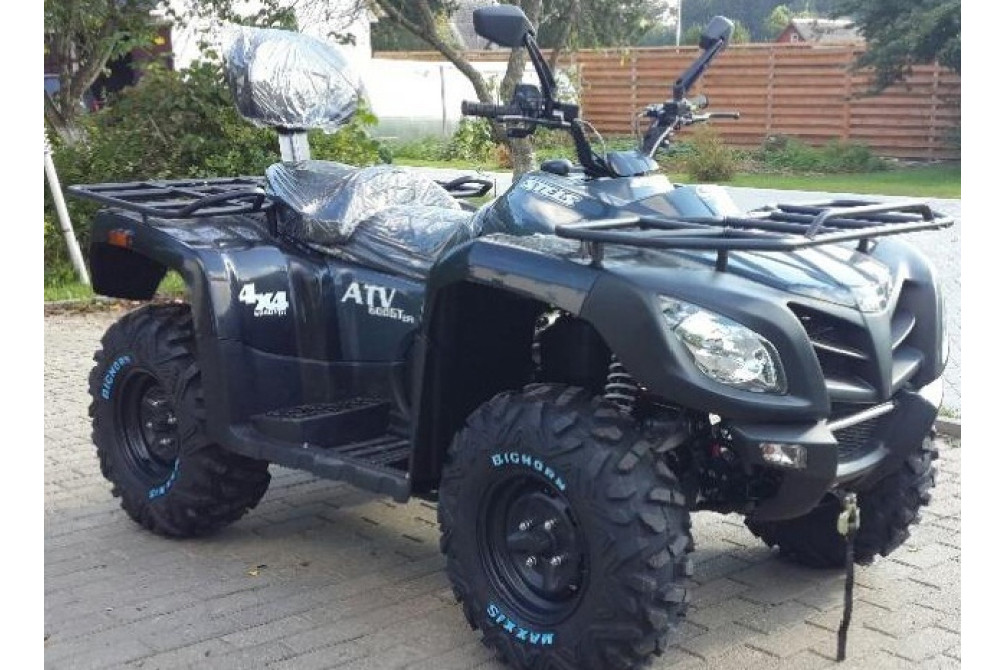 Полноценный двухместный утилитарный квадроцикл. Длинная колесная база (1489 мм) и огромные колеса (26 дюймов) хорошо сочетаются с 26-сантиметровым дорожным просветом. Очень проходимая модель! К тому же Stels ATV 600GT EFI имеет значительную устойчивость на высокой скорости. В движение прокатный квадроцикл приводит 565-кубовый двигатель, мощностью 40 л. с. Привод — на все колеса.