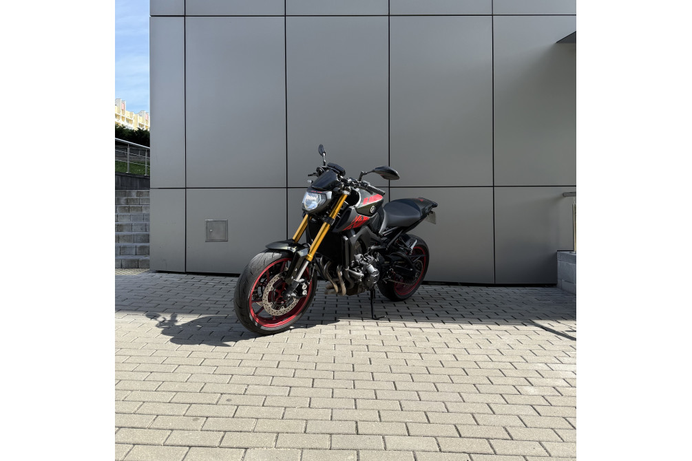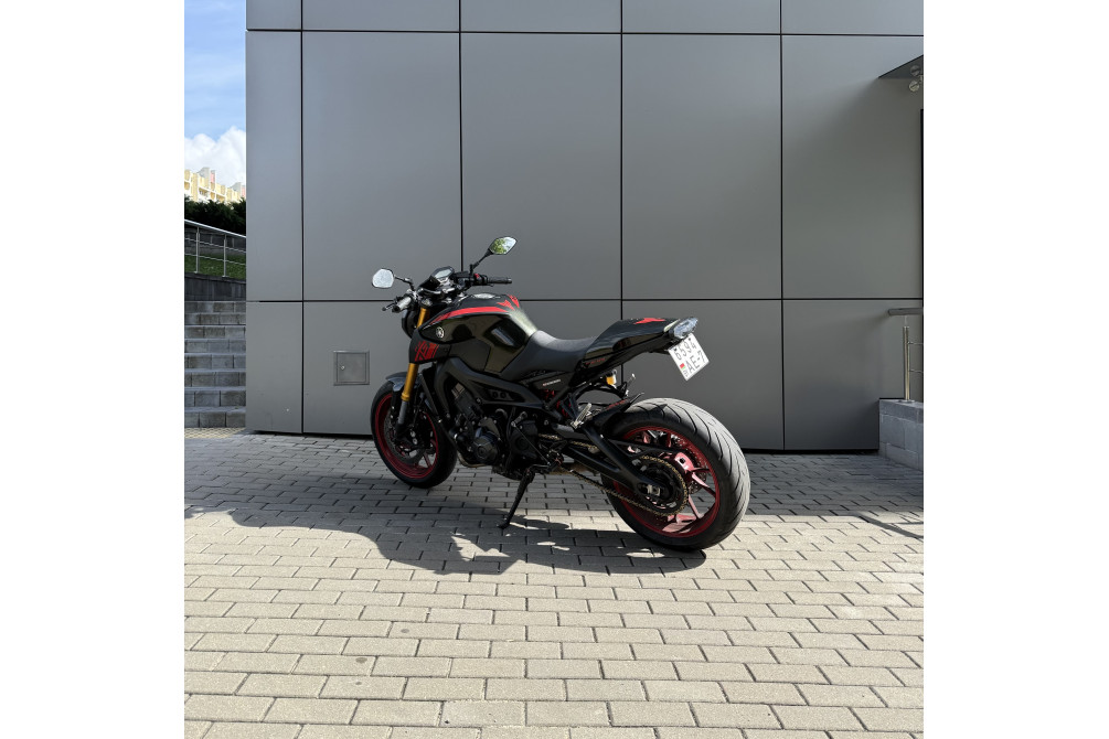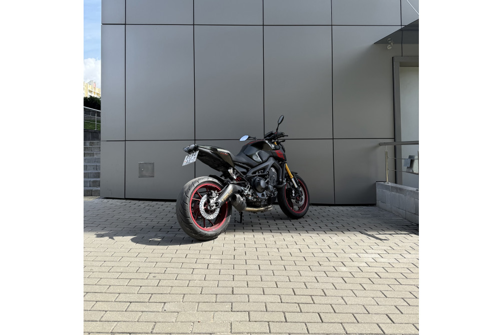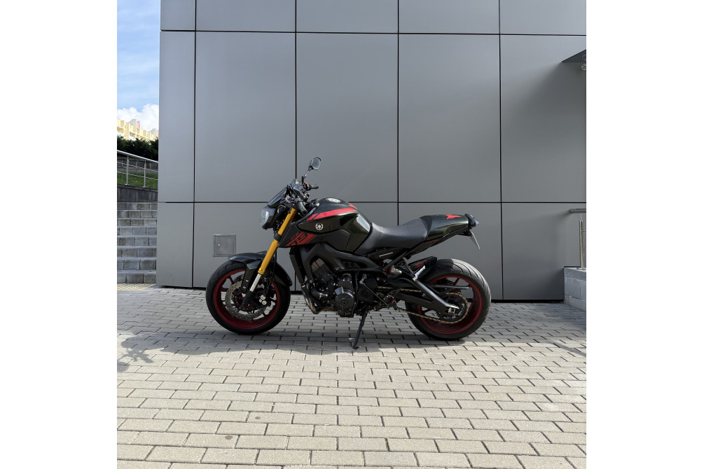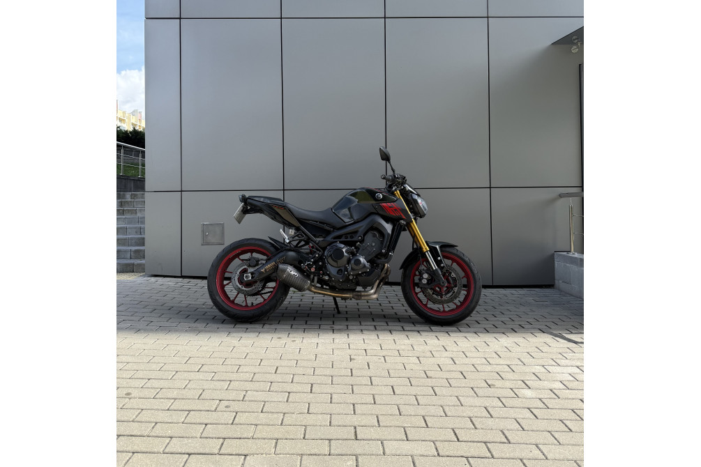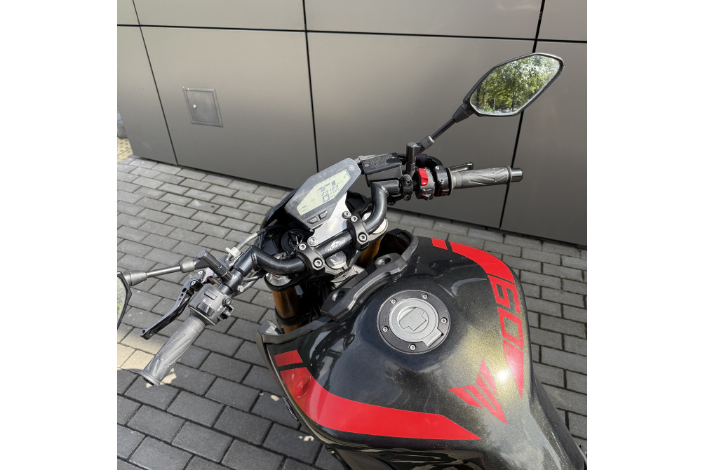 Yamaha MT-09 2014 года — это мотоцикл в классе "некед" с трехцилиндровым двигателем объемом 847 см³, развивающим 115 л.с.при 10 000 об/мин и 87,5 Нм крутящего момента при 8 500 об/мин. Он обладает компактной алюминиевой рамой, инжекторной системой питания с электронным управлением дроссельной заслонкой (YCC-T) и системой контроля тяги (TCS), что обеспечивает отличную динамику и управляемость.
