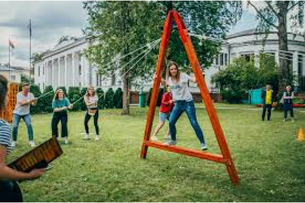 Аттракцион А-степпер идеально подходит для различных командных эстафет и тимбилдинга. Другое название данного реквизита степпер или шагомер.