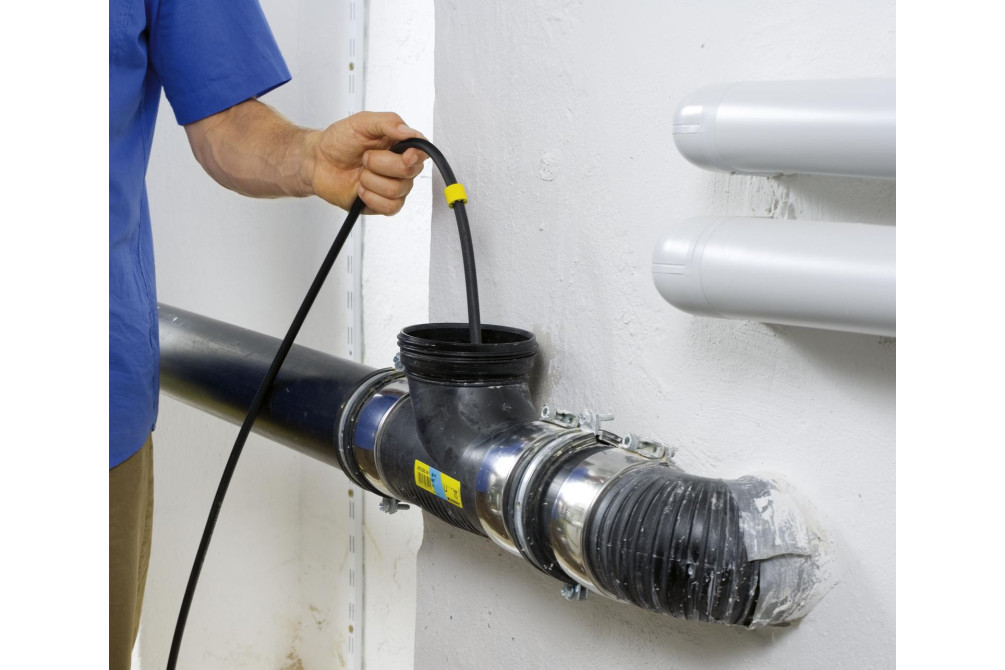 Комплект для промывки труб и желобов с шлангом высокого давления 20 метров работает от бытовых моек высокого давления. Легко справляется с засором труб, сливов и желобов. Напор воды обеспечивает самопроизвольное перемещение промывочной головки и тщательную очистку засоренных желобов, труб и стоков.