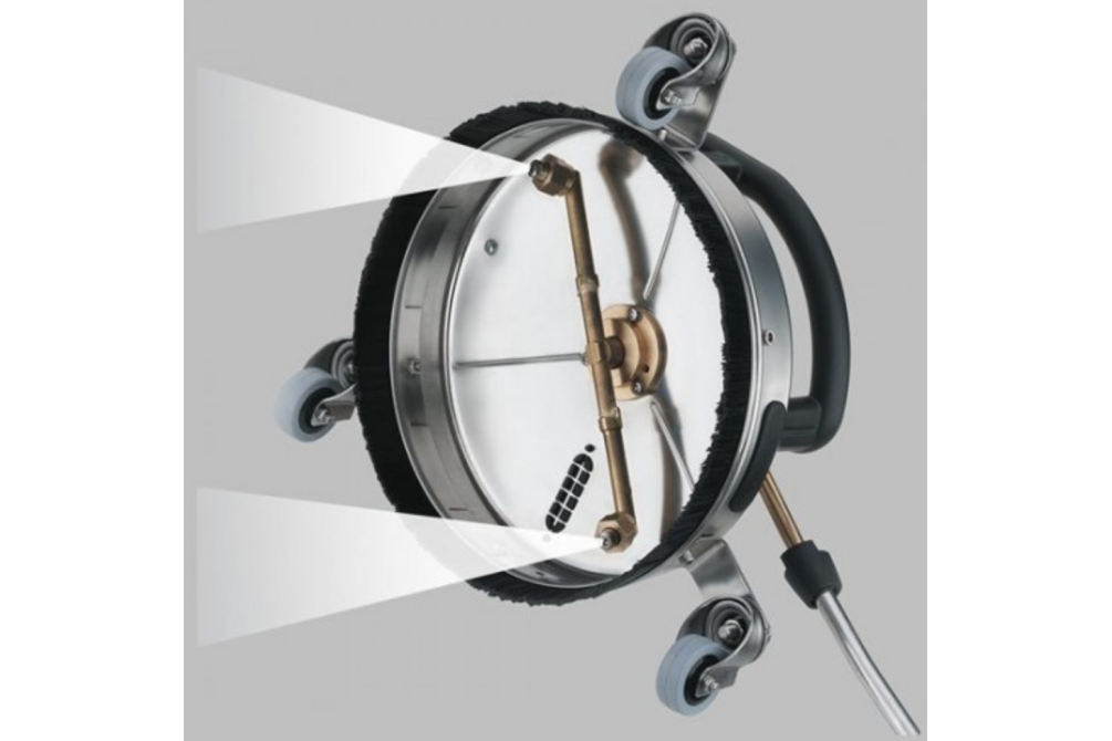В тех случаях, когда обычная чистка высоким давлением требует больших затрат времени, а приобретение поломоечной машины финансово не оправдано, оптимальным решением часто оказывается именно данное приспособление для очистки плоских поверхностей.