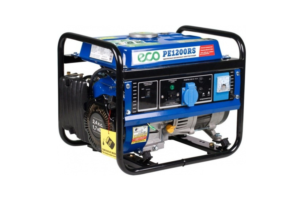 Бензогенератор Eco PE 3800 RS Генератор синхронный, открытый. Макс. мощность 3,3 кВт. Номинальная мощность 3 кВт. Номинальный ток 15,2 А. Напряжение 220±10 В. Уровень шума 72 дБ. Емкость топливного бака 25 л. Расход топлива 1,1 л/ч. Ручной запуск. Бесплатная доставка заказа на сумму от 30 рублей.