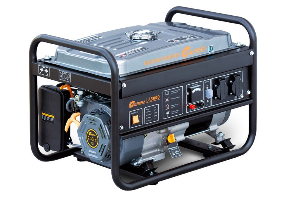 Бензогенератор ELAND LA 3000 Макс. активная мощность 2,8 кВт. Номин. активная мощность 2,5 кВт. Конструкция двигателя — четырехтактный. Объем двигателя 208 см3. Емкость топливного бака 15 л. Запуск ручной. Выходное переменное напряжение 220 В. Частота напряжения 50 Гц. Есть вольтметр. Вес 42 кг.