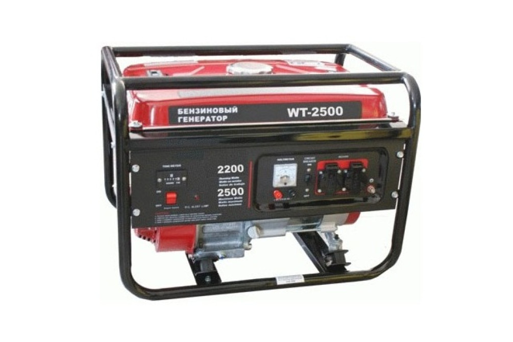 Бензогенератор WATT WT-2500 Макс. мощность 2,5 кВт. Номин. напряжение 220 В. Объем топливного бака 15 л. Вид топлива АИ-92. Вес 45 кг.