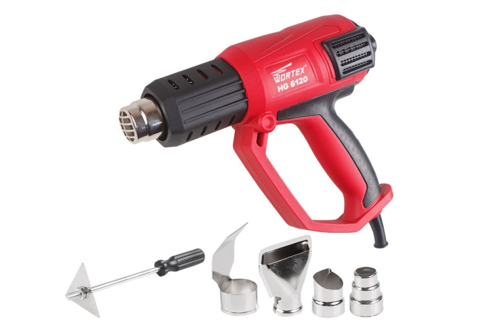 Термовоздуходувка (промышленный фен) Основным назначением промышленного фена является: для не создающего пыли удаления старого лака с металла и дерева; для просушки свежеокрашенных поверхностей и шпаклевки; для размораживания замерзших водопроводов и др.; для горячей усадки концов кабеля; для сварки при ремонте палаток, лодок и для других подобных работ. Мощность 2000 Вт. Температура подаваемого воздуха 50/400/600 °C. Поток воздуха 250/250/500.
