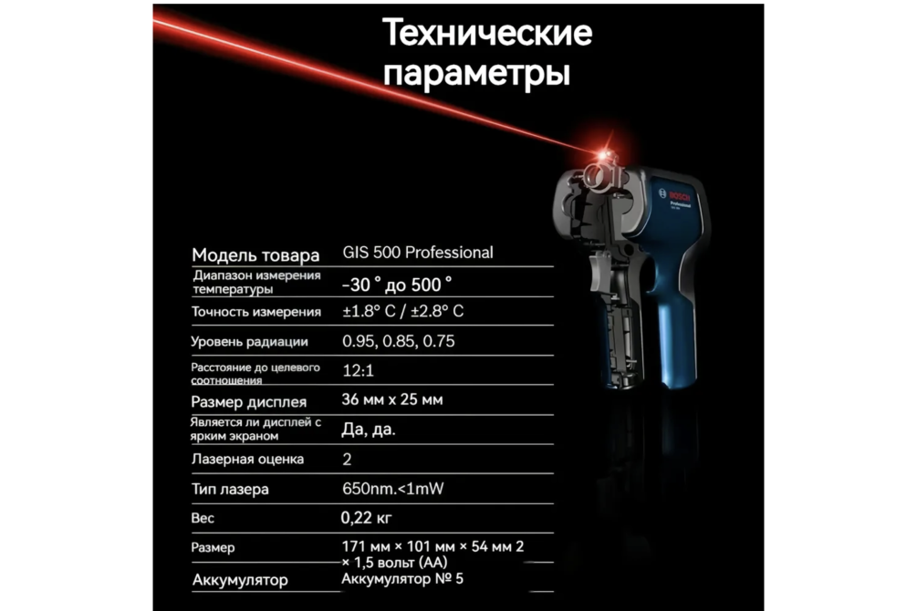 Инфракрасный термометр (пирометр) Bosch GIS 500 для профессионального измерения температуры.