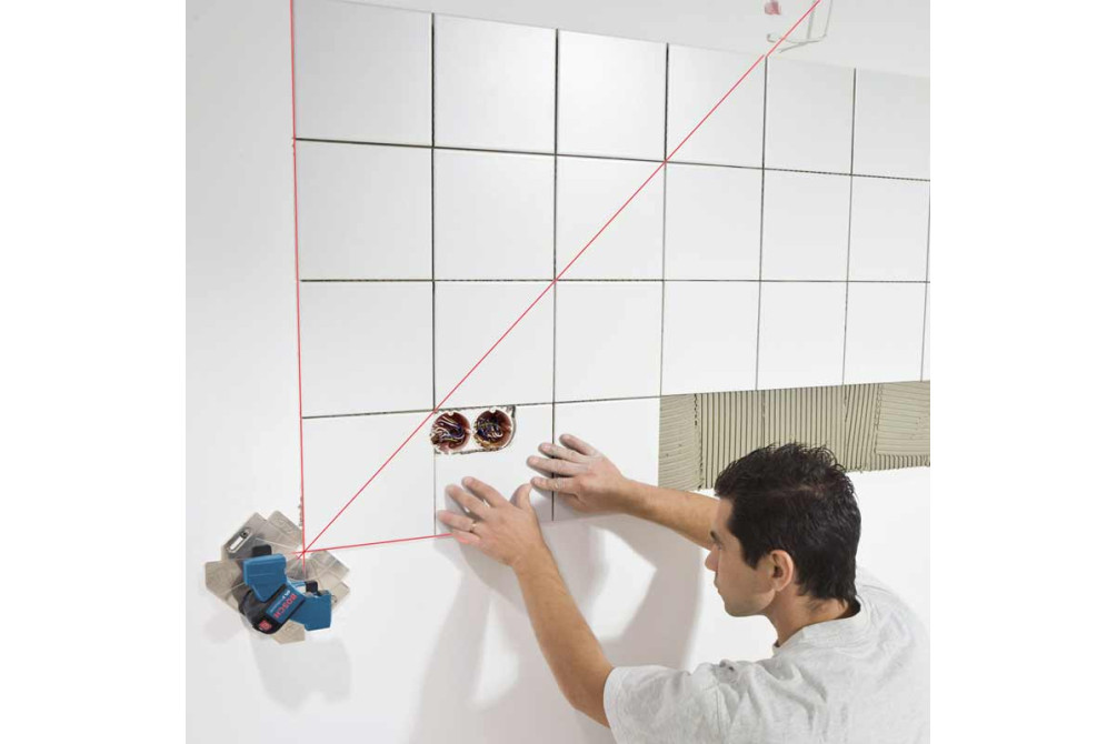Быстрая укладка керамической плитки благодаря дополнительному лазерному лучу под углом 45°.