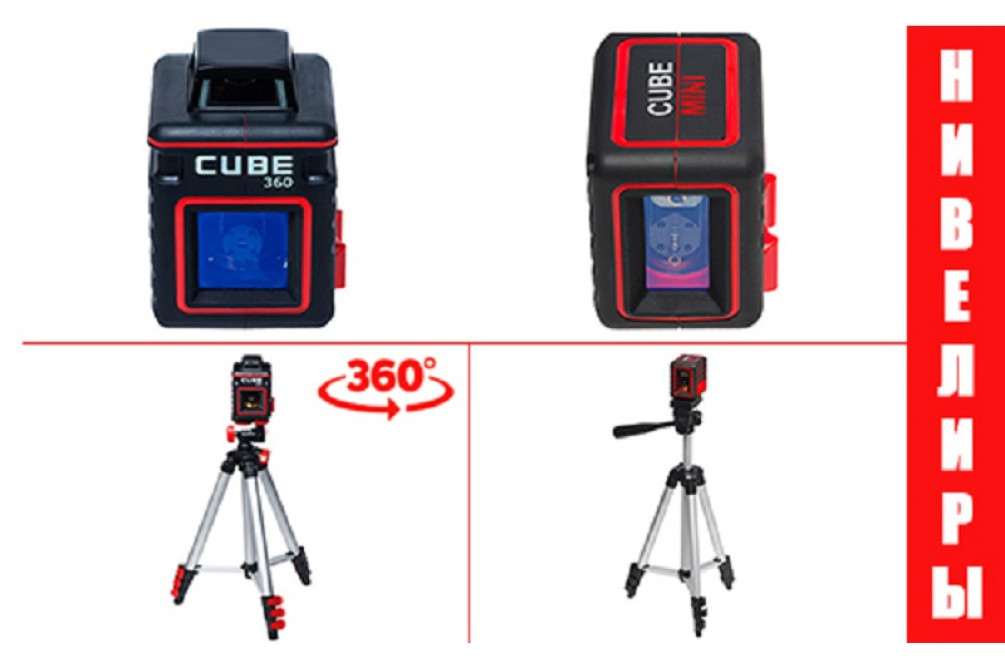 ADA CUBE 360 Professional — Тип: призменный. Построение: прямые линии, крест. Дальность: 20 м. Точность: 3 мм/10 м. Горизонтальных линий: 1. Вертикальных линий: 1. Угол развёртки горизонтального луча: 360 °. Работа в наклонном положении. Регулировка наклона. Комплектация: штатив, батареи, сумка-чехол.