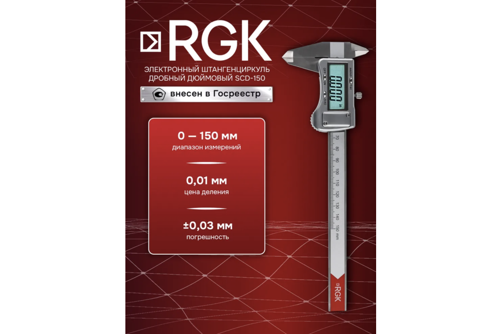 Штангенциркуль электронный дробный (мм/дюймы) RGK SCD-150.