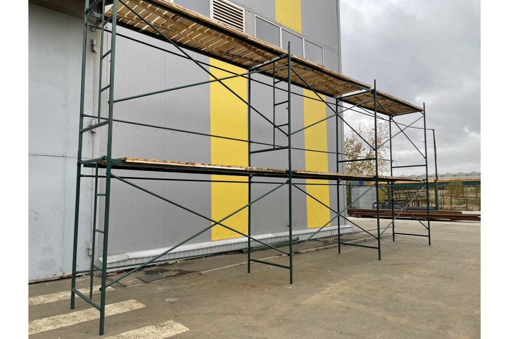Леса строительные (ЛРСП-40) в аренду от 0,7 р за секцию в сутки (от 14 копеек за м.кв.). Щиты в комплекте.