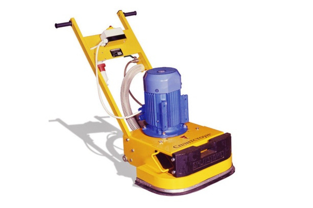 Мозаично-шлифовальная машина по бетону GM/7 »Сплитстоун» предназначена для выравнивания, шлифовки и полировки поверхностей полов из бетона, природного и искусственного камня. Напряжение 380 В. Мощность двигателя 7,5 кВт. Частота вращения фрез 1000 об/мин. Производительность 17 м2/час. Ширина обработки 60 см. Шлифовальных фрез 6 шт. Габаритные размеры: (ДхШхВ) 123 х 70,5 х 108 см. Вес 155 кг.