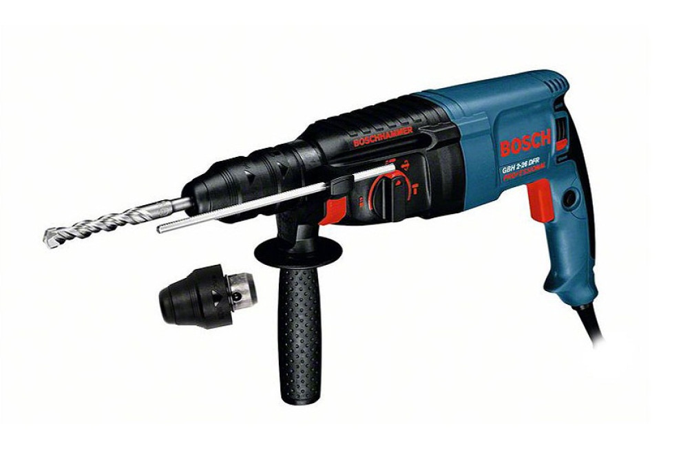 Перфоратор Bosch GBH 2-26 DFR Потребляемая мощность 800 Вт. Тип крепления сверла — SDS-Plus. Расположение двигателя — горизонтальное. Макс. энергия удара 2,7 Дж. Макс. частота ударов 4000 уд/мин. Макс. число оборотов холостого хода 900 об/мин. Тип питания — от сети. Макс. диаметр сверления, бетон 26 мм. Макс. диаметр сверления, металл 13 мм. Макс. диаметр сверления, дерево 30 мм. Регулятор числа оборотов. Реверс. Быстрозажимной патрон в комплекте. Бесплатная доставка заказа на сумму от 30 рублей.