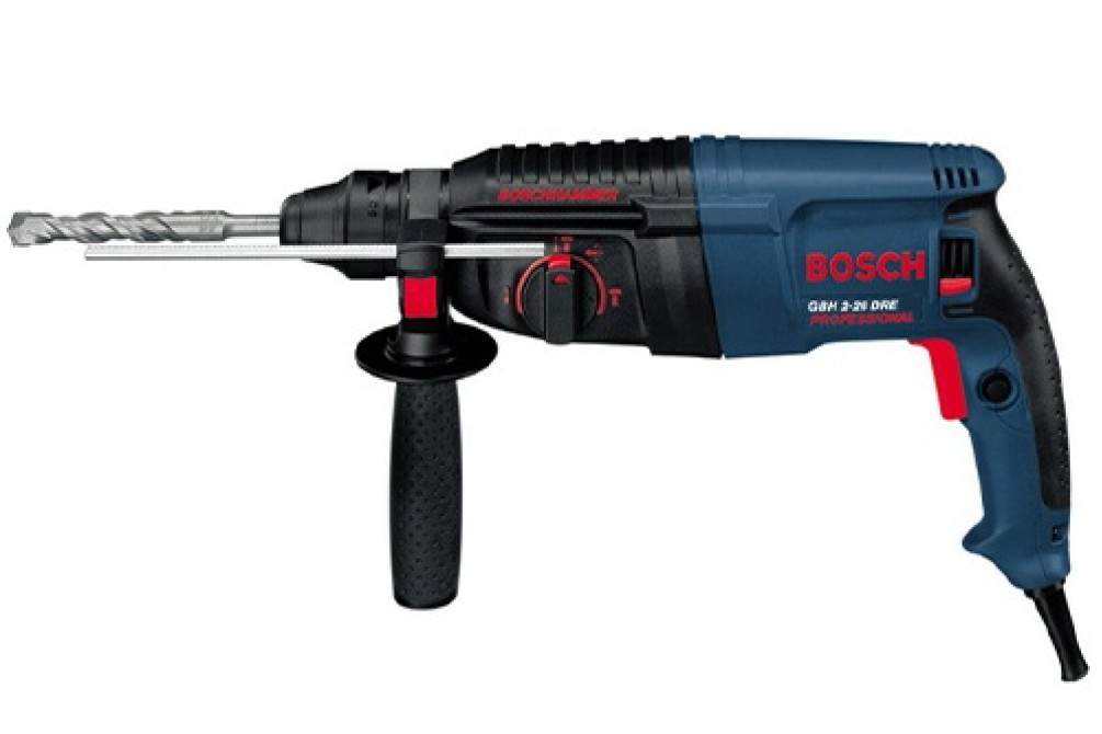 Перфоратор Bosch GBH 2-26 DRE Мощность 800 Вт. Патрон: цанговый, SDS-plus. Скорость вращения 900 об/мин. Энергия удара 2,7 Дж. Частота ударов: 4000 удар/мин. Вес 2,7 кг. Комплектация: кейс, рукоятка, 2 патрона (SDS plus и цанговый), ограничитель глубины сверления, зажимной ключ, переходник под SDS plus.