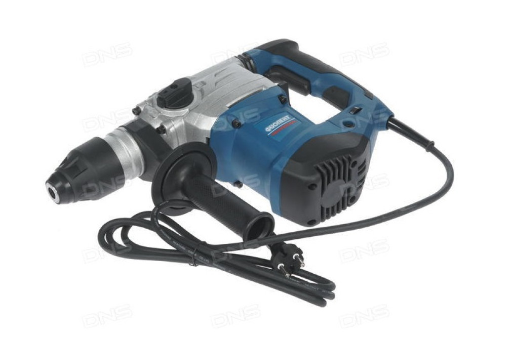 Перфоратор имеет 3 режима работы: сверление, сверление с ударом, долбление, а также возможность электронной регулировки оборотов. Блокировка шпинделя от вращения в режиме удара обеспечивает удобство работы зубилом при пробивании прямоугольных проемов. Дополнительная многопозиционная ручка позволяет надежно удерживать инструмент при любых режимах эксплуатации. Прочный корпус редуктора спроектирован таким образом, чтобы гарантировать долговечность и максимальный отвод тепла. При сверлении полой коронкой мощность инструмент позволяет проделать отверстие до 65 мм в бетоне и кирпичной кладке. Мощность 1500 Вт. Энергия удара 8 Дж. Режимы работы: сверление, сверление с ударом, долбление. Максимальный диаметр сверления, дерево 40 мм. Максимальный диаметр сверления, металл 13 мм. Максимальный диаметр сверления, бетон 32 мм. Противовибрационная защита. Частота вращения 900 об/мин. Вес 5 кг. Патрон SDS-plus.