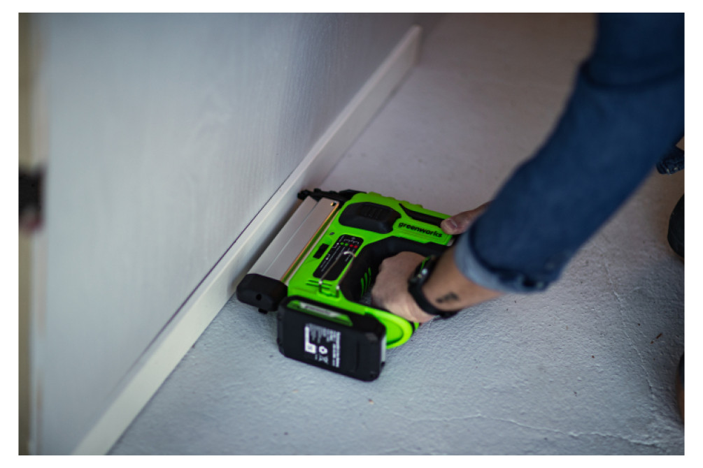 Аккумуляторный нейлер Greenworks GD24BN 24В предназначен для забивания гвоздей длиной от 19 до 50 мм.в различные материалы, такие как дерево, фанера и другие строительные материалы. Он удобен для строительных и отделочных работ, где требуется высокая мобильность и отсутствие необходимости в подключении к электросети. Подходит для обшивки, установки плинтусов, сборки деревянных конструкций и других подобных задач