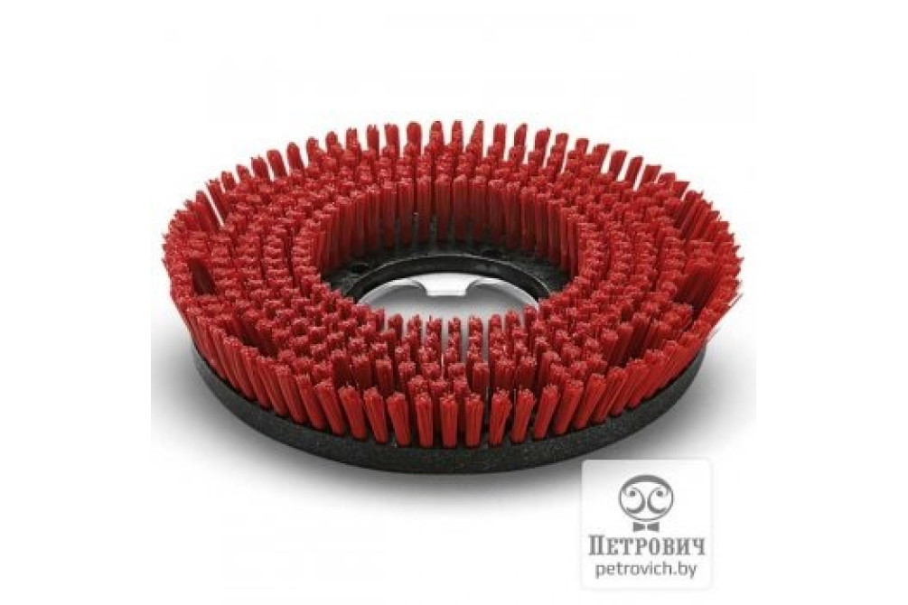 Дисковая щетка (средней жесткости, красная), 430 мм в диаметре. Подходит для обычных и деликатных напольных покрытий. Щетина: Полипропилен, толщиной 0,6 мм, 41 мм длиной.