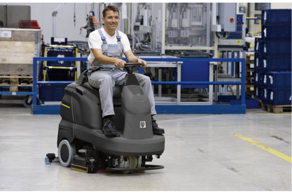 Поломоечная машина Karcher B 90 R — профессиональный аппарат для интенсивных нагрузок, оснащенный сиденьем для оператора.