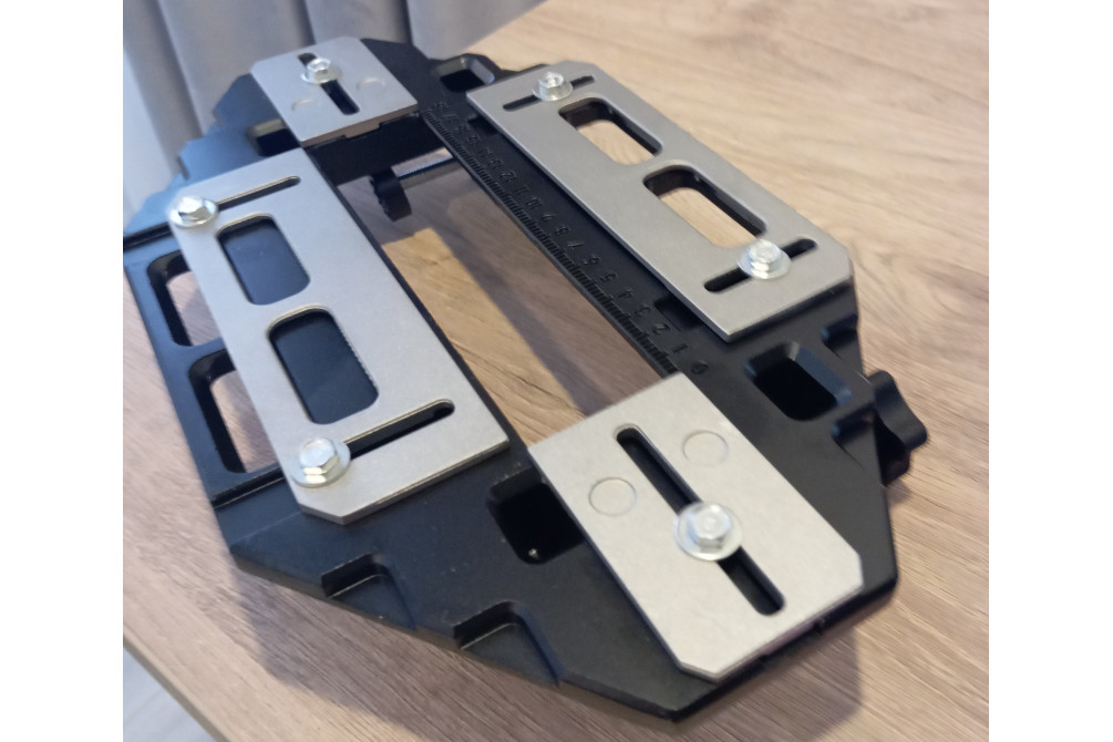 - Универсальное и регулируемое приспособление для фрезера, врезает любые петли (скрытые тоже) одновременно в дверное полотно и коробку.