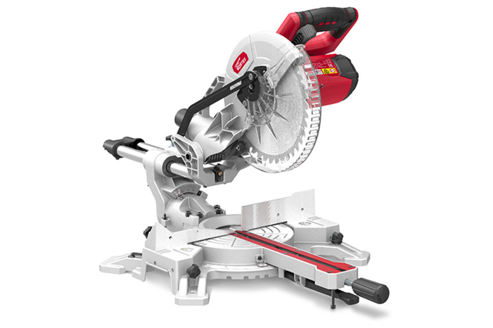 На пиле установлен мощный двигатель c высокой производительностью, имеется система пылеудаления, лазерный указатель для более точного реза, металлические скользящие полозья, плавный ход реза, система удобного зажима заготовки, точный рез, Быстрая регулировка глубины и ширины реза.