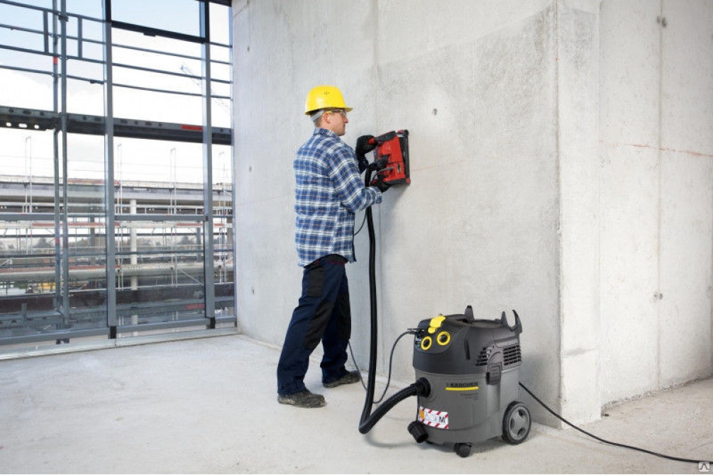 Промышленный пылесос Karcher NT 35/1 Tact Te Сбор мелкой пыли, крупного строительного и бытового мусора или воды: — влажная и сухая очистка поверхностей полов и стен; — работа с электроинструментом (штроборез, шлифмашинка и т.д.) — пылесос оснащен специальной розеткой на корпусе и регулятором мощности. Расход воздуха 61 л/с. Разрежение 230/23 мбар/кПа. Объем мусоросборника 35 л. Макс. потребляемая мощность 1380 Вт. Длина кабеля с резин. изоляцией 7,5 м. Вес 11,5 кг. Габариты (ДхШхВ): 520 х 380 х 580 мм. Всасывающий шланг 2,5 м. Металлические удлинительные трубки 2 х 0,5 м. Мусорный бак 35 л. Форсунка для чистки пола. Регулятор настройки мощности всасывания (мин-макс). Розетка для подключения инструмента. Автоматическая чистка фильтра. Пылесборный мешок (стоимость 5 р.)