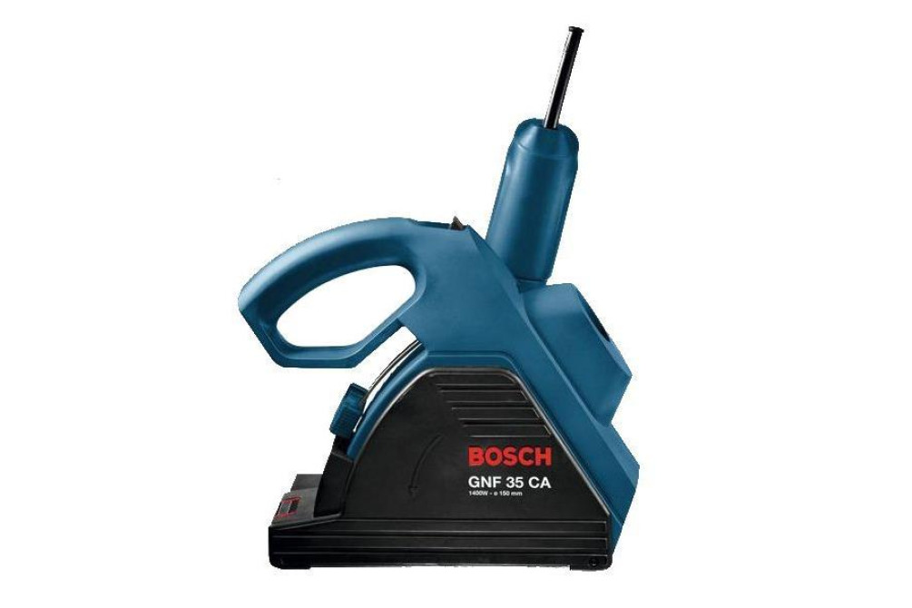 Штроборез (бороздодел) Bosch GNF 35 CA Professional Потребляемая мощность 1400 Вт. Диаметр диска 150 мм. Макс. глубина паза 35 мм. Макс. ширина паза 39 мм. Преимущества бороздодела GNF 35 CA Professional: — Электроника постоянства для поддержания постоянного числа оборотов даже при большой нагрузке, — Максимальное удобство при эксплуатации благодаря эргономичному дизайну ручки и многообразию вариантов захвата, — Удобный доступ для быстрой и простой замены круга с помощью только одного инструмента, — Максимальную безопасность обеспечивают защитный кожух, блокировка от повторного пуска и блокировка погружения, — Легкое и точное ведение инструмента благодаря четырем роликам, расположенным на опорной плите. Высокая надежность благодаря использованию металлической плиты скольжения, — Разъем для подключения системы пылеудаления.