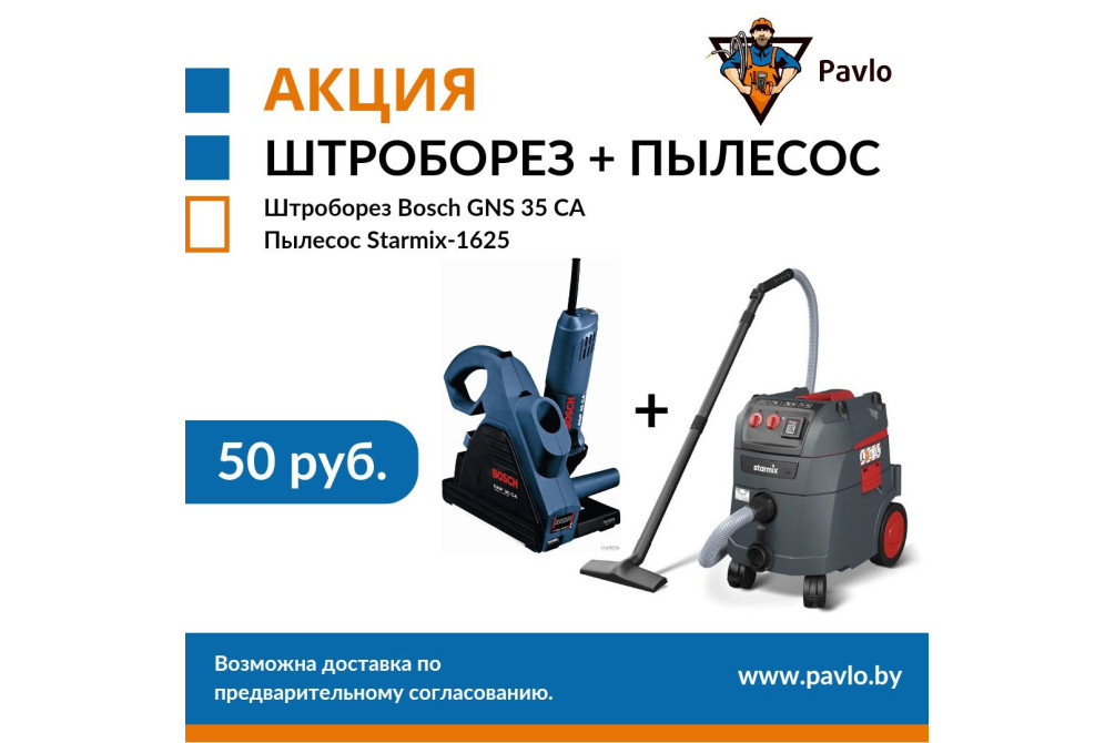 Штроборез Bosch GNS 35 CA и пылесос Starmix 1625