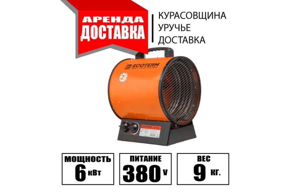 Предлагаем в аренду тепловую пушку Ecoterm EHR-06/3С — мощный и эффективный обогреватель, предназначенный для быстрого и качественного обогрева помещений. Идеально подходит для строительных объектов, складов и производственных помещений.